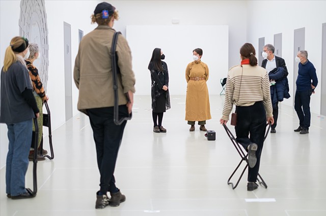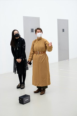 Our engagement with the work was informed by our own experiences of movement and displacement. From my perspective, this included biographical ties spanning Mongolia, China, and Germany, and an ongoing negotiation of belonging across these contexts. Approaching the project through this lens, Shiwen and I treated the performance as a parallel articulation—one that engages questions of migration, identity, and dissonance through sound, listening, and embodied presence. The resulting work unfolded as a layered sonic encounter that stood alongside Tieu’s installation, extending the dialogue across practices, geographies, and lived experience.